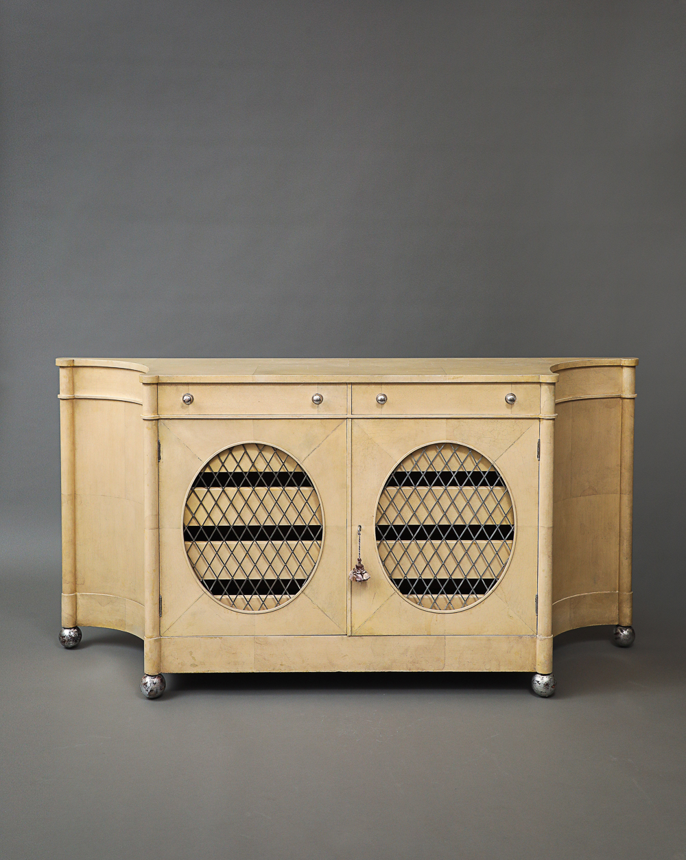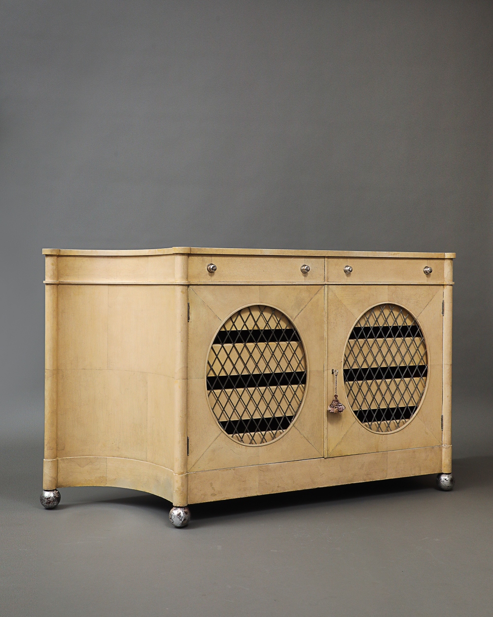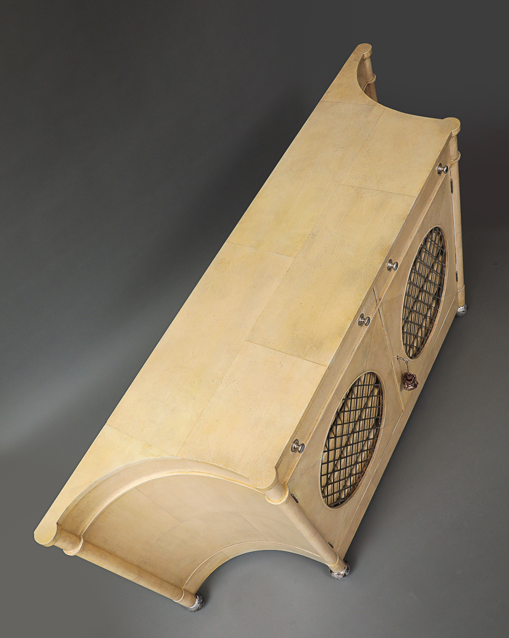 Raised on four silver balls.